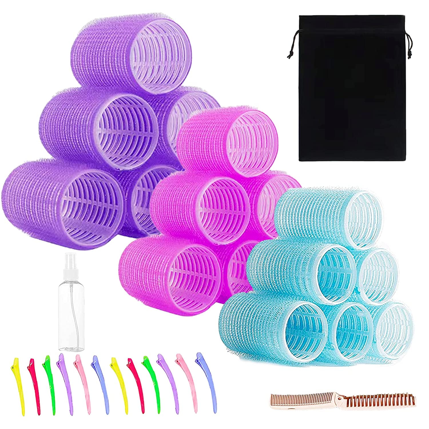 Amazon Com 33 Pcs Hair Rollers Set Self Grip Hair Rollers For Long Medium Short Hair Jumbo Large Medium Hair Curlers 22 Velcro Rollers 10 Stainless Steel Clip 1 Storage Bag Beauty Personal Care