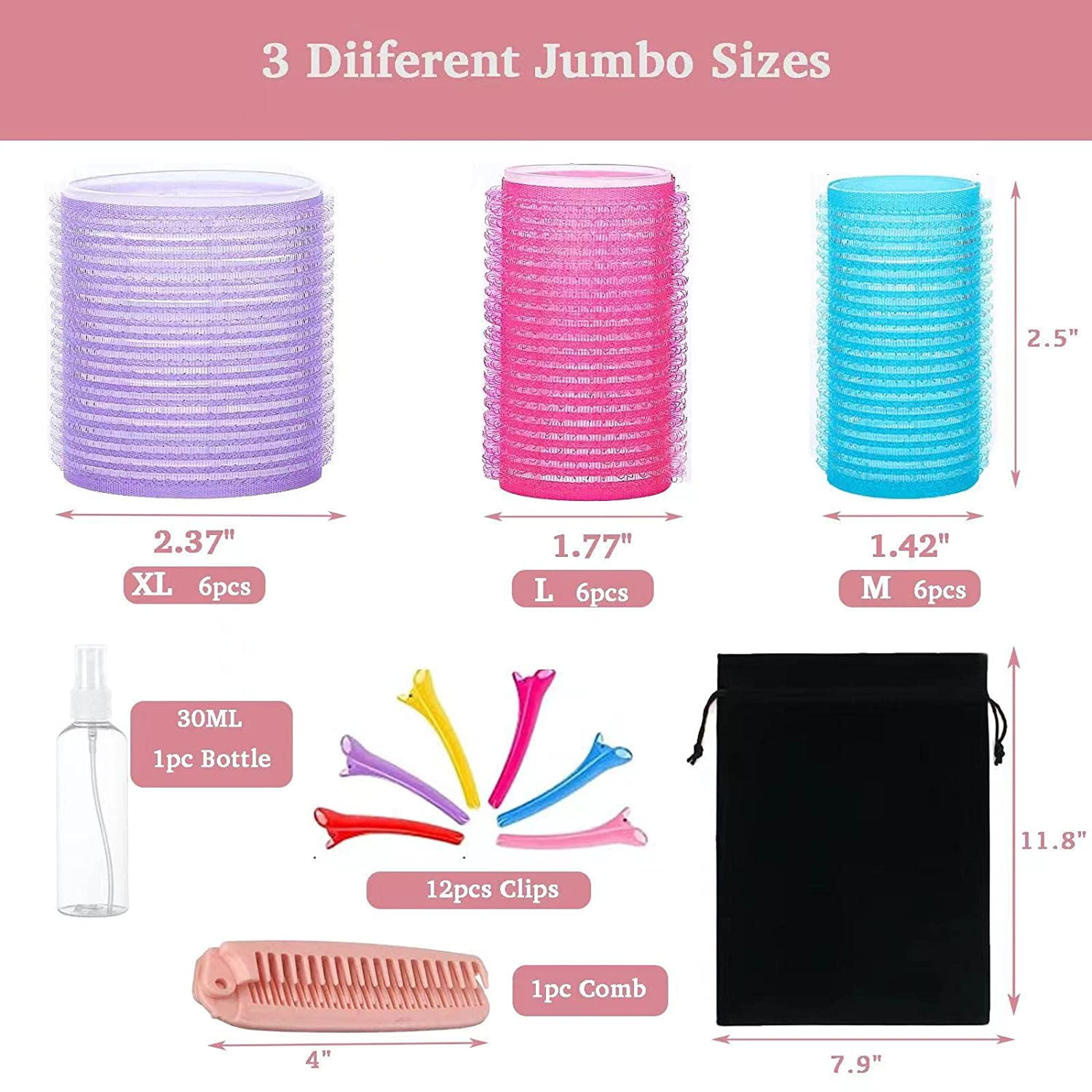 Jumbo Hair Rollers Sets Large Self Grip Hair Curlers 36 Packs Hair Rollers With Clips Includes 2 Size 24 Pcs Heatless Hair Curlers And 12 Pcs Hair Clips For Long Medium Short Hair Walmart Com